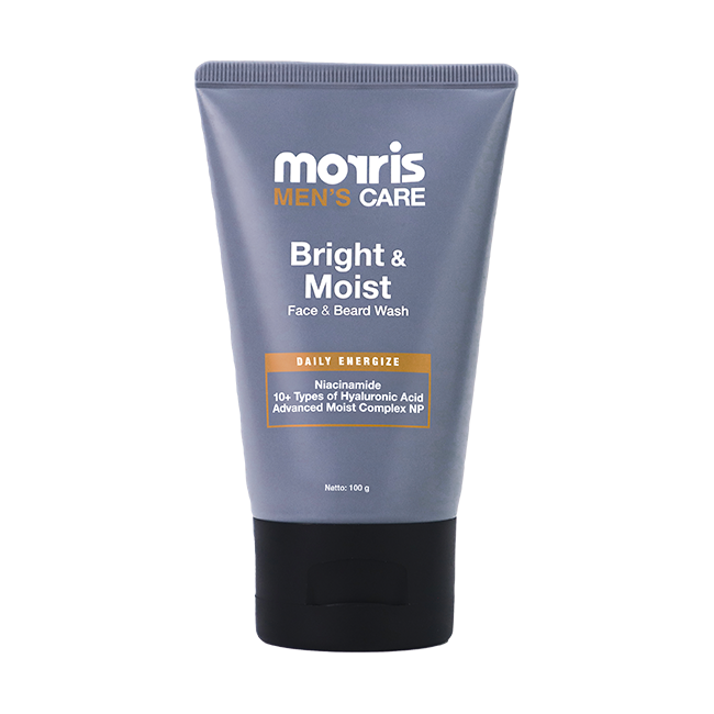 Morris Men’s Care Bright and Moist Face and Beard Wash yang berfungsi sebagai Cleanser Action yang mampu membersihkan kulit wajah dari kotoran, minyak berlebih, polusi, dan debu baik sebelum dan sesudah beraktivitas. Diperkaya dengan Niacinamide, Advanced Moist Complex NP, dan 10+ Types Hyaluronic Acid kombinasi yang mampu mencerahkan dan menjaga kelembapan kulit wajah