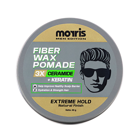Hair Styling MORRIS FIBER WAX POMADE terbaru dengan inovasi formulasi basis FIBER yang berfungsi untuk menata rambut, dengan natural finish look dan berdaya tahan tinggi (Extreme Hold) untuk mempertahankan style rambut sepanjang hari.